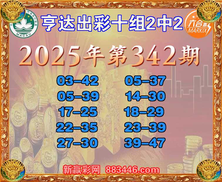 342期:【亨达出彩】 🏵️十组2中2🏵️